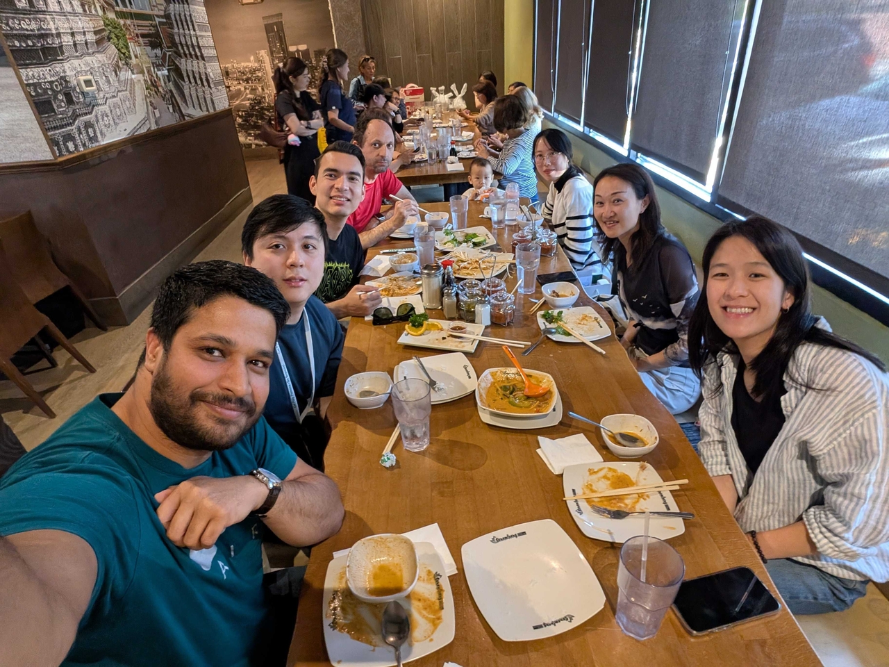 On May 16, 2025, the group came together to celebrate Dr. Yi-Chun Lin’s successful completion of her Ph.D. with a joyful lunch gathering. The celebration took place at Sanamluang Thai Cuisine in Claremont, where everyone enjoyed a delicious spread of authentic Thai dishes in a warm and festive atmosphere.